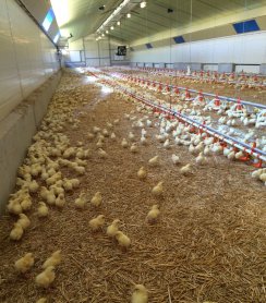 Les poussins, issus d'une souche à croissance lente, sont installés dans des bâtiments d'élevage modernes, dotés d'équipements de dernière génération et de haute technologie. Ils sont élevés au sol sur de la paille ou sur des copeaux. Ils peuvent se déplacer librement dans l'enceinte du poulailler.
