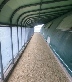 A partir du 28ème jour d'élevage, les volailles ont accès à un jardin d'hiver : une aire abritée (comparable à une véranda) disposant d'une ventilation, avec une circulation d'air extérieur, et de grandes surfaces vitrées qui illuminent les volailles de la lumière du jour.