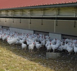 Après avoir atteint une maturité suffisante, les volailles ont accès, en fonction des conditions climatiques, à une aire extérieure de grattage et de pâturage. Elles peuvent sortir à leur guise grâce à des trappes conçues à cet effet. Elles peuvent s'y promener comme bon leur semble, en totale liberté dans l'espace qui leur est réservé.